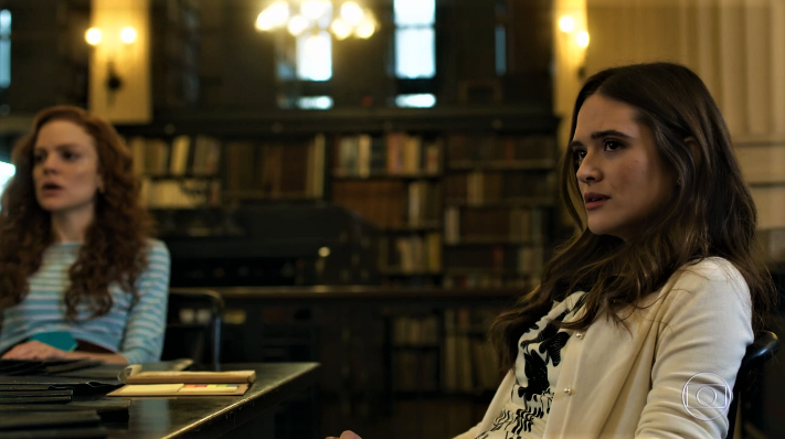 “Por Deus!… Então é mesmo verdade o que eu ouvi?”, dirá Miss Celine (Maria Eduarda de Carvalho), se referindo a ascensão de Mariacarla. “Sim… A Mariacarla vai ficar à frente da empresa agora…Fui barrada da reunião a portas fechadas… A interventora já chegou dando ordens… de forma autoritária”, acrescentará Marocas, bastante desanimada. “Nunca fui com a cara daquela mocréia…E agora é ela quem dá as cartas”, dirá Nat, secretaria de Samuca (Nicolas Prattes).